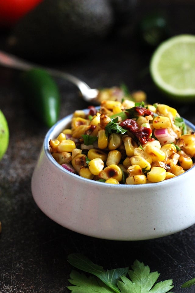 Easy Chipotle Corn Salsa is a perfect dip for nachos or tortilla chips. Recipe uses sweet roasted corn that pairs perfectly with smoky chipotle peppers.
