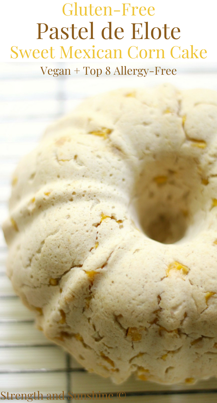 A lightened up, gluten-free, vegan, & allergy-free recipe for 'Pastel de Elote' Sweet Mexican Corn Cake! It's moist, dense, with a pudding like texture.