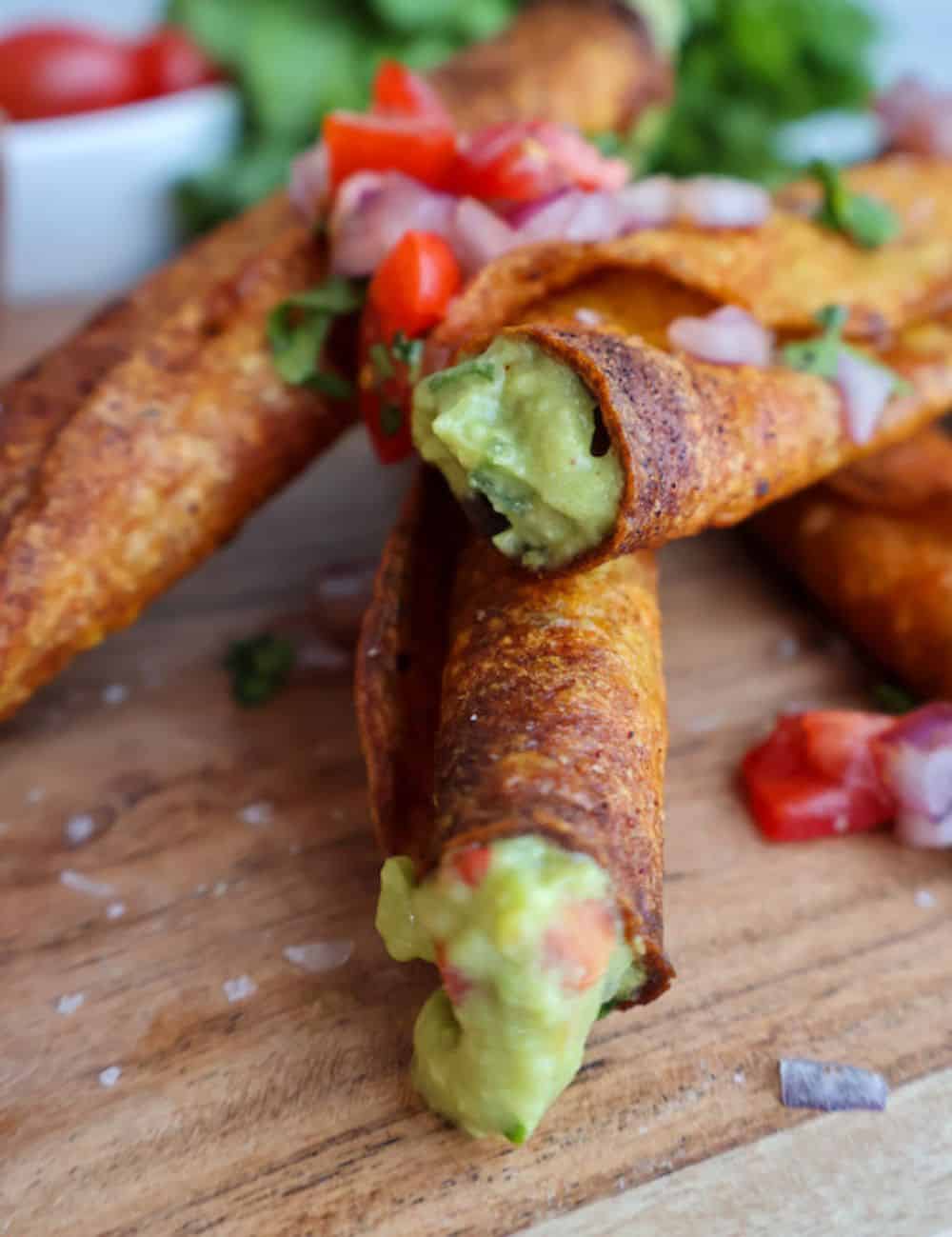 Healthy Vegan Taquitos with Guacamole is the perfect replacement for their unhelpful counterpart! They are also gluten-free, and dairy free! Skip the takeout and bring the fiesta to your home!
