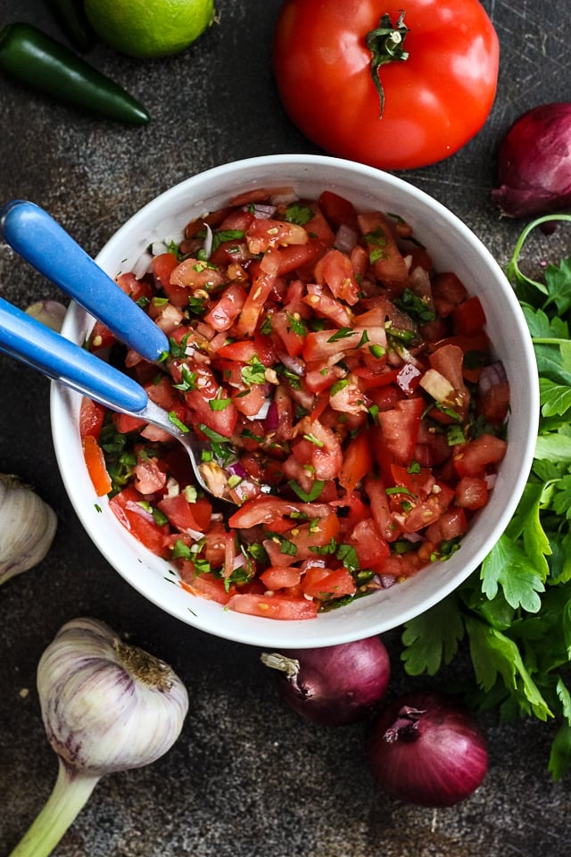 Fresh Tomato Salsa recipe is healthy, delicious, and comes together quickly. This Pico de Gallo pairs beautifully with any Mexican-inspired meal.