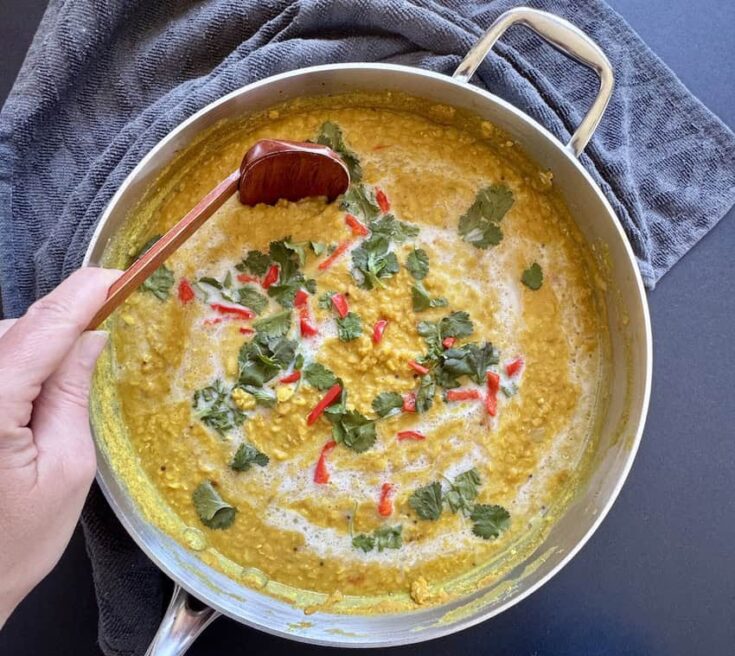 This vegan lentil dal is comforting, nutritious and simply delicious. Lightly spiced with wonderful flavors, this is exactly the soul food recipe you need to have on your menu every week.