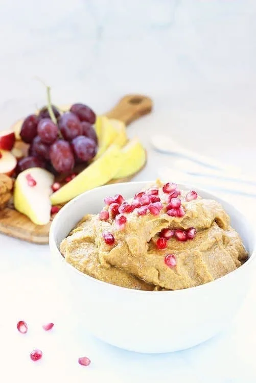 This pumpkin pie dessert hummus is something you never knew you needed. Pair it with crisp fruit such as apple or ginger snap cookies.
