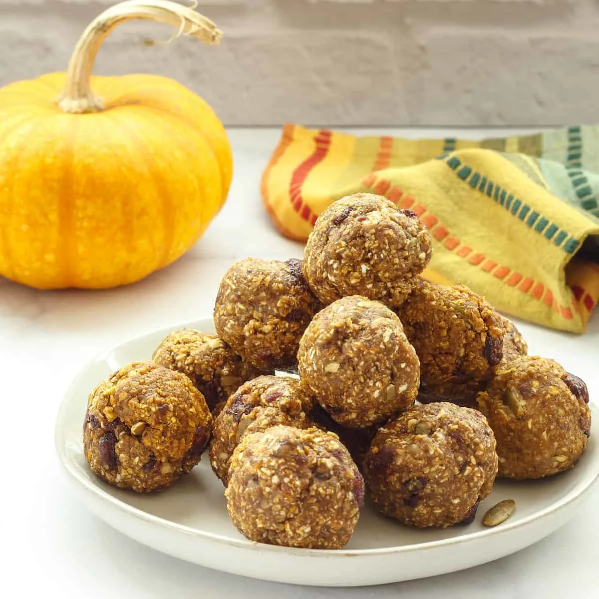 These pumpkin spice energy balls are the perfect, warming snack for on the go or for a quick and healthy bite to eat.