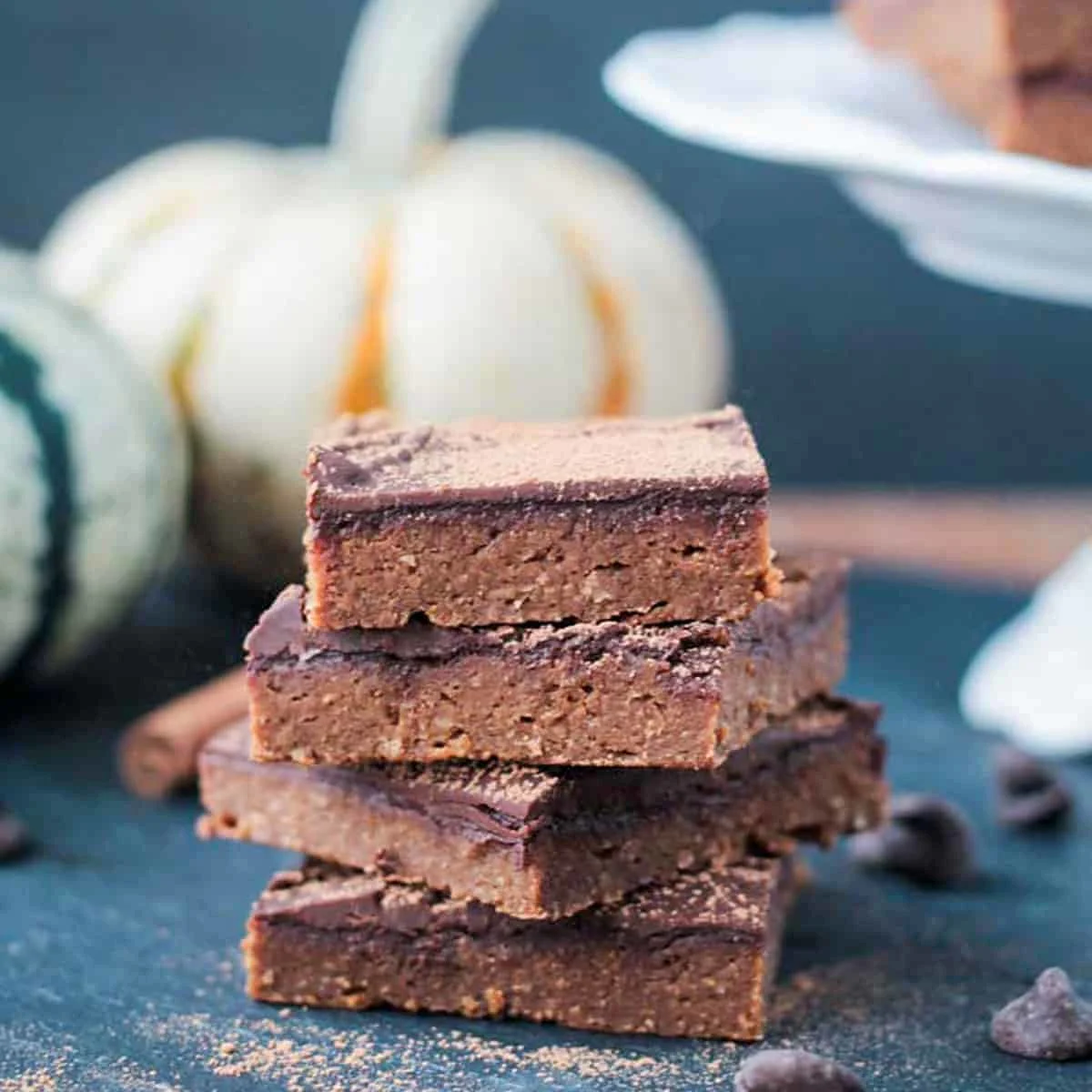 These vegan pumpkin fudge bars are the perfect, gooey blend of chocolate and pumpkin puree.