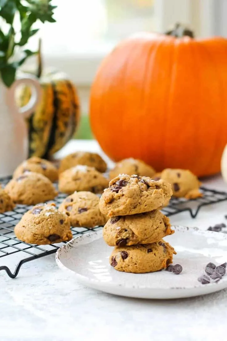 These vegan pumpkin chocolate chip cookies are the perfect fall treat. Chunky, chewy and delicious, these are a great way of using pumpkin in your baking.